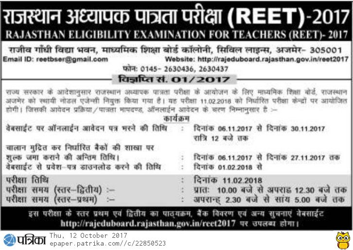 Reet 2021 Online Application Started For 32000 Vacancies Education Rajasthan Gov In Apply From Today Onwards Check Eligibility Criteria And Selection Process Here - Board of secondary education, rajasthan has given a notification for the rajasthan teacher eligibility test (rtet) or rajasthan eligibility examination for teacher (reet).