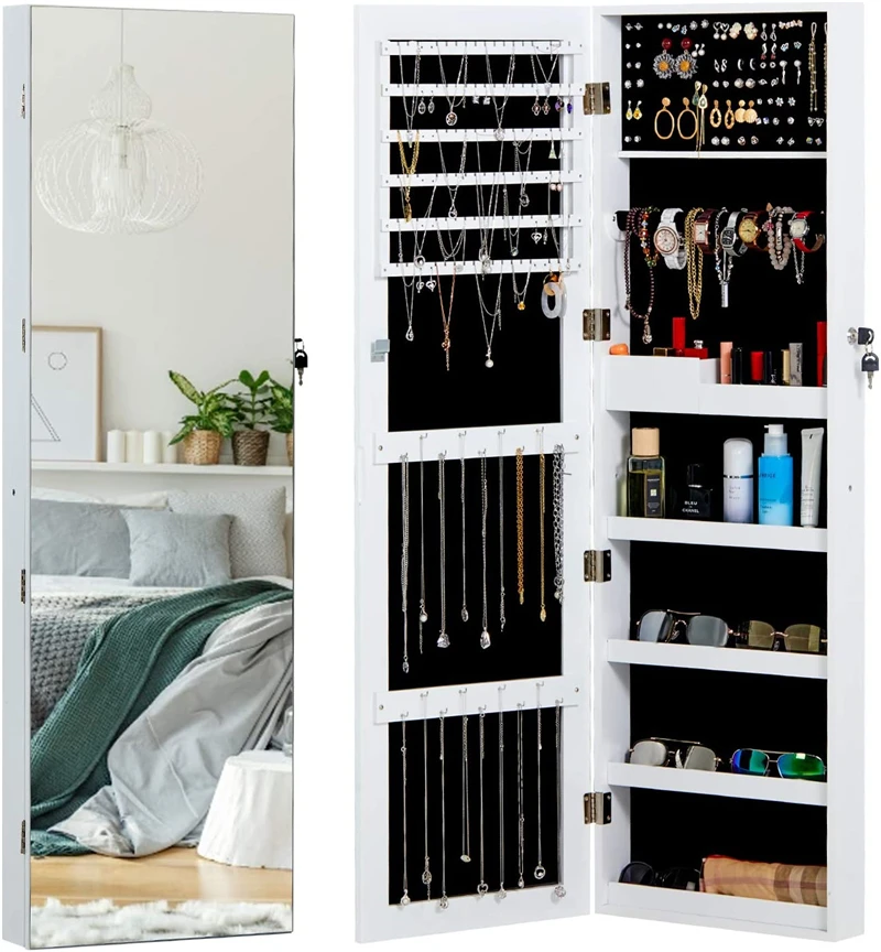 Full Screen Mirrored Jewelry Cabinet Wall Door Mounted Jewelry Armoire Full Length Mirror Large Capacity Jewelry Armoire White Dressers Aliexpress - Amrutha wall mounted jewelry armoire with mirror.
