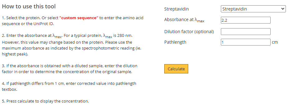 Aat Bioquest Streptavidin Concentration Calculator - This protein calculator is an excellent tool for anyone who is interested in living a healthy lifestyle and eating a balanced diet.