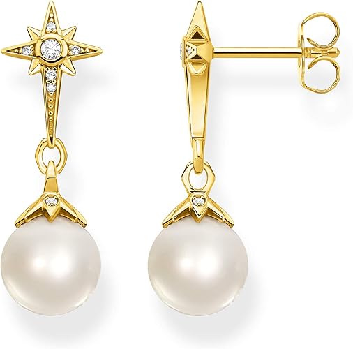 Thomas Sabo H2118 445 14 Women S Earrings Pearl With Star Gold 925 Sterling Silver 750 Yellow Gold Plated Amazon Co Uk Jewellery - 67% off moon stars six mans stars full diamond cool earring set 0 review cod.